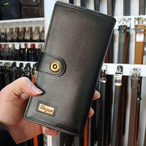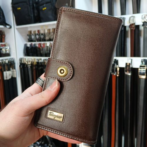 کیف پول پالتویی دکمه دار چرم طبیعی